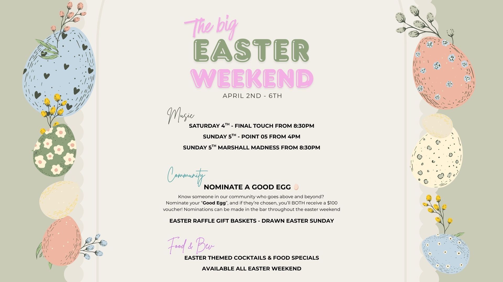 Please note: The Club will be CLOSED on Good Friday, but we’re back and bringing the vibes all weekend long.