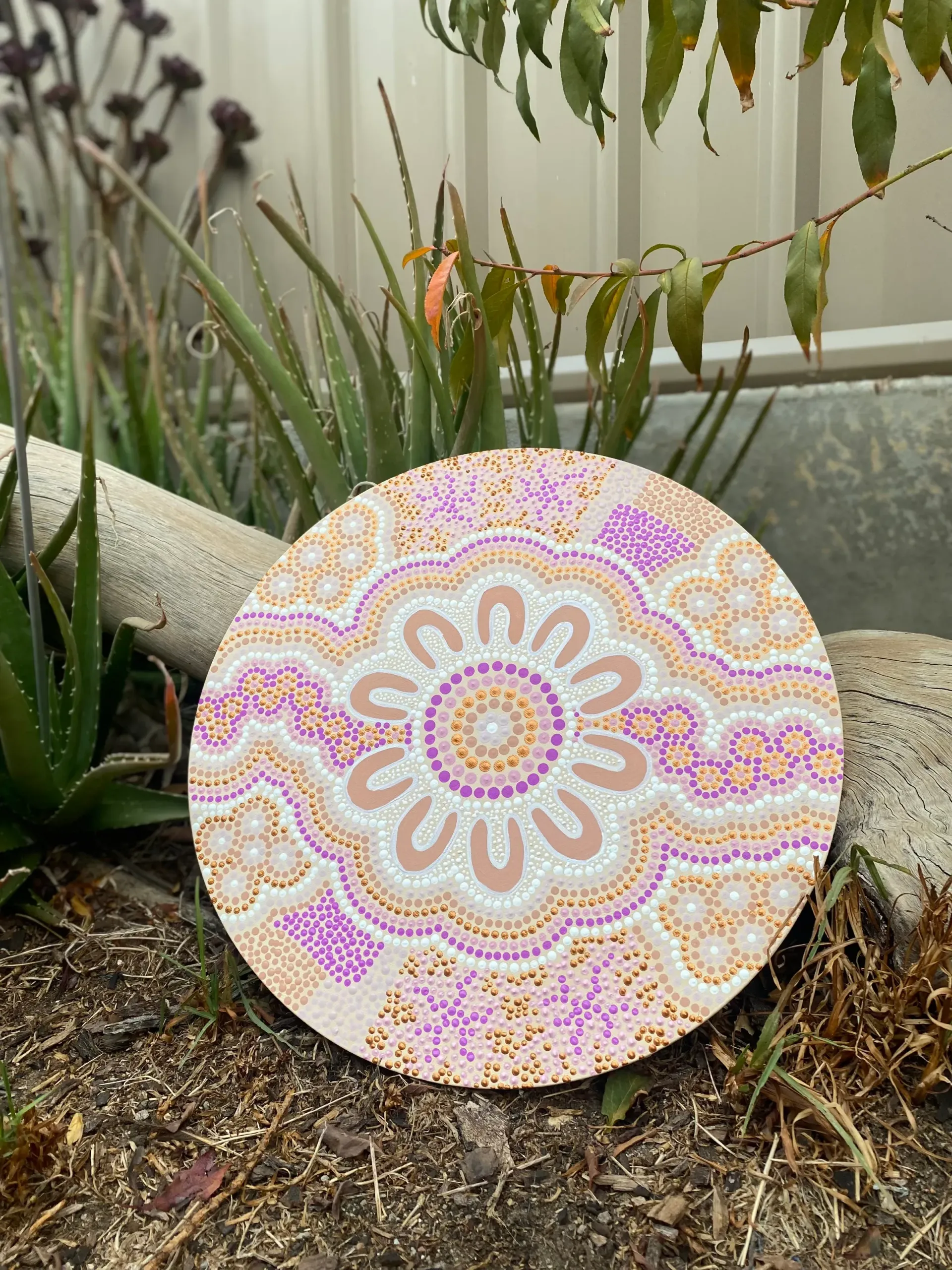 Through her acrylic dot paintings, Kiana expresses her personal journey while celebrating Aboriginal culture and identity. One of her most meaningful achievements is her hand-crafted, dot-painted children’s names — created to inspire pride and connection in the next generation.