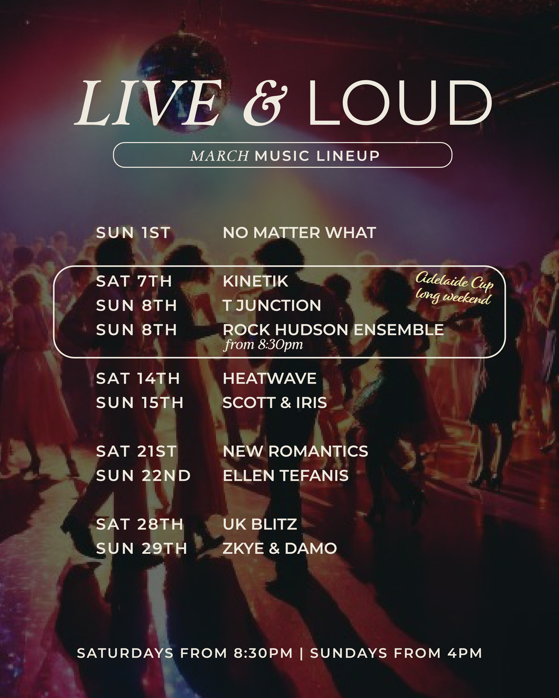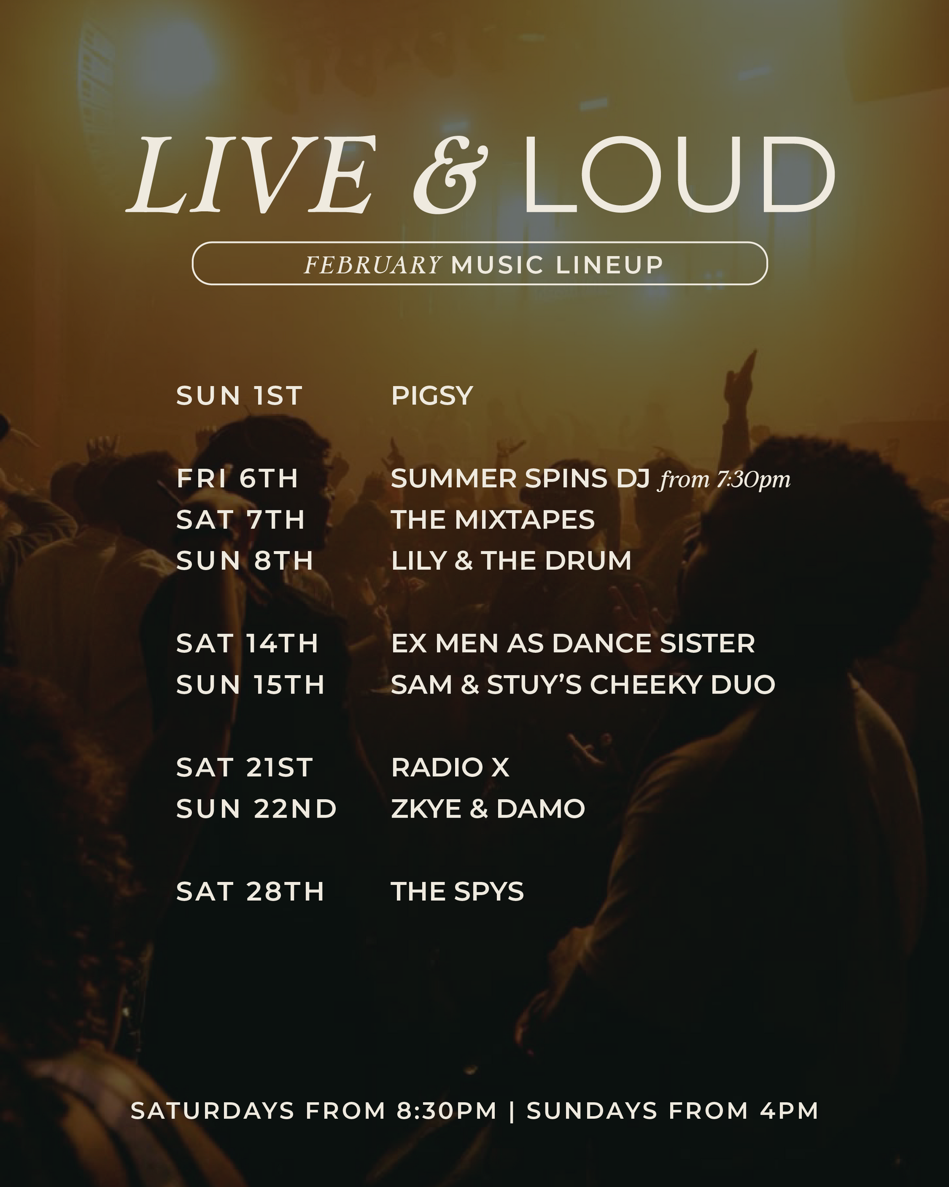 Saturday 7th February from 8:30pm